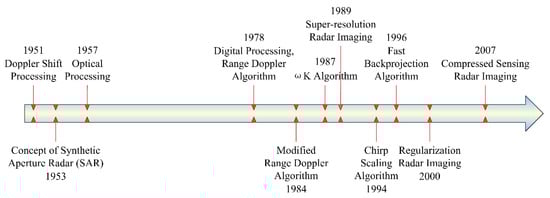 Radar imaging technique goes back to at least the 1950s. In the past 60 years, it has been stimulated by hardware performance, imaging theories, and signal processing technologies. Figure 1 shows the developmental history of radar imaging methods.