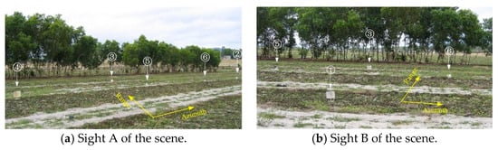 Trihedral reflectors in the scene. Trihedral reflectors 1–4 are large, and trihedral reflectors 5 and 6 are small (taken from []).