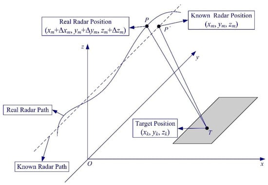 Geometry of the observation position errors in SAR. (Taken from []).