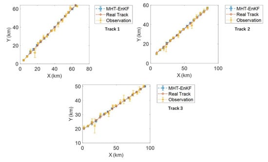 22] established an improved EnKF model to solve an asynchronous data fusion of a target tracking nonlinearity problem with the coexistence of velocity and acceleration. However, these studies have not extended the EnKF approach to MTT scenarios. Generally speaking, the application of the EnKF method in target trajectory analysis is comparatively preliminary.