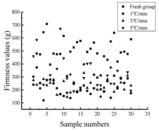 5.2. Firmness Prediction Model at Different Cooling Rates