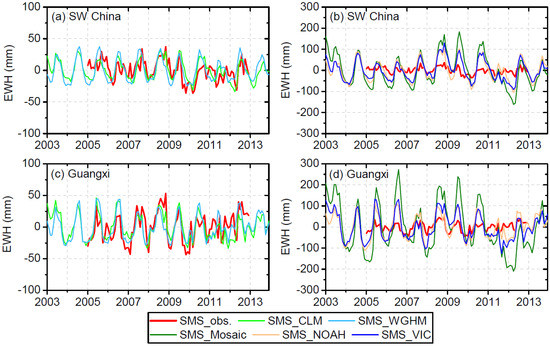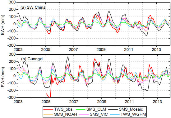 | TWS Anomalies | Model/GRACE | SW China | Guangxi | ||||