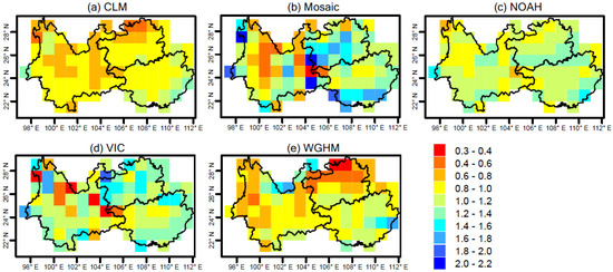 | Region | Scaling Factor | CLM | Mosaic | Noah | VIC | WGHM | CV |