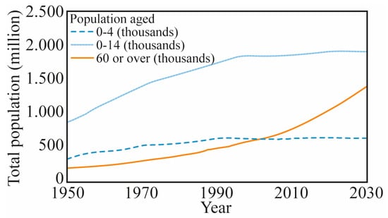 The continuous increase of the life expectancy due to improvements in the quality of life and advances in medicine as well as the increasing interest in family planning and birth control policies in developed countries have led to a rapid and progressive increase on ageing of the world’s population [18]. According to the World Health Organization, by 2020 the number of elderly people (over 60 years) will be higher than the children below 5 years [46] (Figure 1). The population ageing also results in an increase of clinical conditions that affect the human locomotion such as stroke, spinal cord injury, Parkinson’s disease, and weakness of the skeletal muscles [19]. This scenario has pushed the boundaries for novel therapeutic methods and assistance devices for patients with locomotor impairment, which also result in the development of novel devices with the aim of monitoring parameters for human health assessment [21].