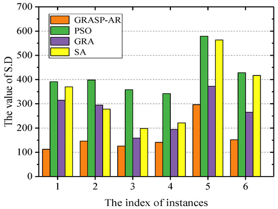 Moreover, we plot the histogram according to S.D and evaluate the stability of the four algorithms by the distribution of the columns. As shown in Figure 5, the stability of GRASP-AR is much higher than the other three algorithms.