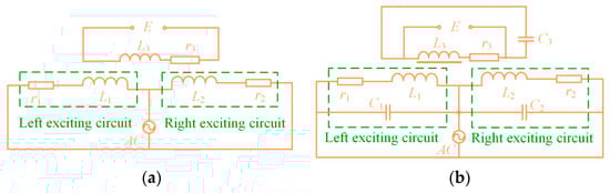 The impedance differences between the exciting circuits of the two sensors, as shown in Figure 2a,b, are given by: