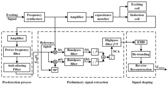 where, is the effective particle signal, is the initially induced electromotive force interference, and are the angular frequencies of the exciting signal of the sensor and the effective particle signal respectively, and is the Gaussian noise resulting from environmental interference.