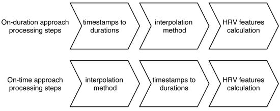 Finally, it was found that the interpolation introduces low frequency components (LF) and reduces high-frequency components (HF) power []. This aspect affects frequency domain HRV features [], while little effect was found in time domain HRV features [].