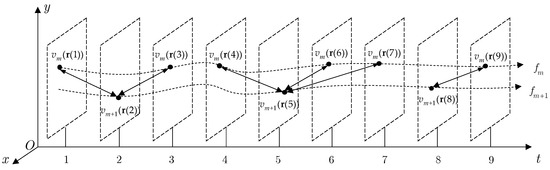 If two consecutive stereo tracks describe the movement of the same target, the positions of two data points from different tracks should coincide when they are simultaneously sampled. Due to the inevitable disturbances, such as spatial and temporal biases, temporal shifting, noise, and silent duration [39], it is impossible to make the measurements idealized. However, some data points can be found in pairs from two tracks appearing in a similar area in a certain time delay by setting temporal and spatial tolerance. They can be regarded as “clues” to evaluate the similarity for partial tracks. Here, they are called joint-temporal-spatial matching points (JTSMPs) and defined as follows: