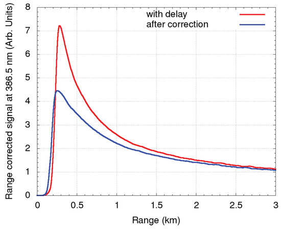 Instrumentation-related systematic uncertainties, originating from the laser tilt, telescope misalignment, angular dependence of the transmission of interference filters, spatial inhomogeneity of the detector sensitivity, as well as uncertainty of trigger due to the delays of individual transient recorders and dead time of the PMTs [17], can induce signal distortions, which are independent of the state of atmosphere. The near range signal up to 2 km can be significantly distorted by trigger delay (as an example, the distortion for the N signal is shown in Figure 7).