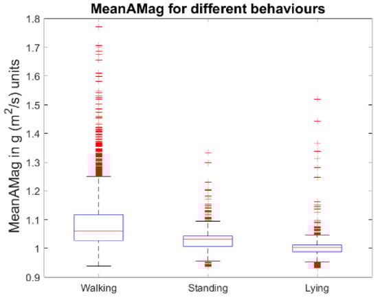 The classification power of this measure can be observed in Figure 2 in Walton et al. [8]. Window size of the classification output from the device was set to 7 s with a 3 s delay between readings, hence producing a timestamp, predicted behaviour label (PME classification) and a MeanAMag output every 10 s.