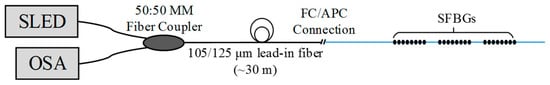 Scheme for the interrogation system. Note: SLED = superluminescent light emitting diode; OSA = optical spectrum analyzer; MM = multimode; FC/APC = Ferrule Connecter/Angled Physical Contact.
