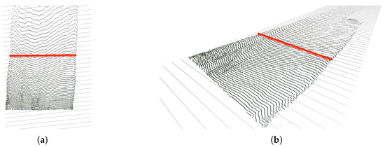 Exemplary computation of the road’s width. (a) Top view. (b) Right view.
