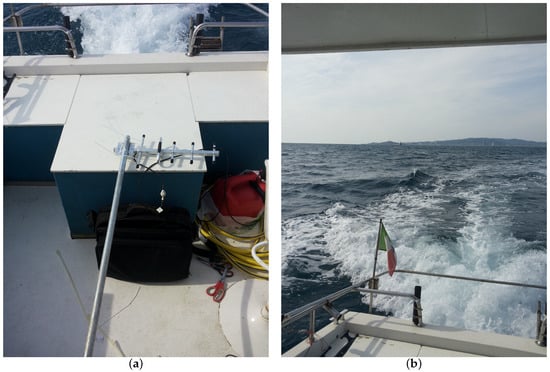The tests were accomplished with smooth sea conditions having a maximum wave height of 50 cm. It was a sunny day with a mean temperature of 18 °C and a gentle breeze whose average speed was of 4 m/s. Testing the system with more severe marine and weather conditions would have been extremely interesting. Unfortunately, though, the boat we had available for the fullfilment of the tests could not cast off in such cases. However, as it will be explained later on (see Section 6.2), sub-GHz wireless links (e.g., the ones exploiting LoRa modulation) are robust to these sorts of effects. Moreover, 600 packets were transmitted by respecting the laws on temporal occupation of the transmitting band [33] in an overall amount of time of approximately 14 h.