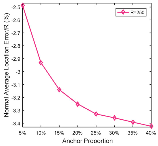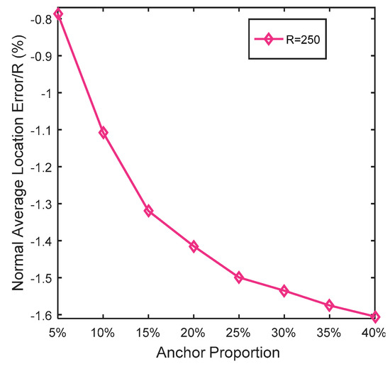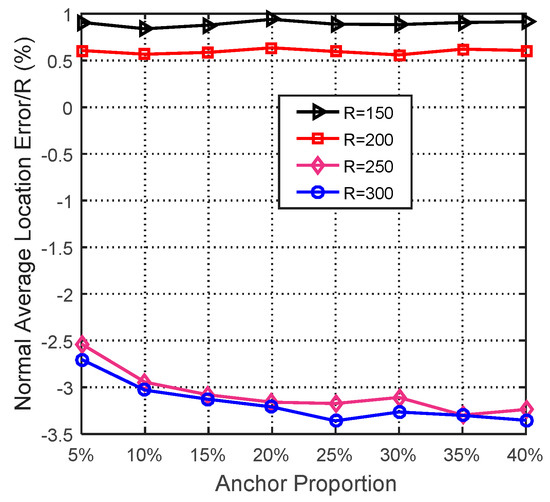 More specifically, for WSN#1, when the anchor proportion ≤10% and R ≤ 250, Centroid and Grid-scan not only obtained the worst localization results, but also kept URNs. Obviously, an anchor proportion = 5% is better than an anchor proportion = 10%.