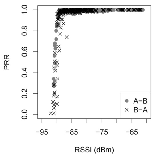 In this figure, the Packet Reception Rate (PRR) vs. the RSS is presented, based on a measurement campaign performed in [19], for the same radio chip CC2420 that was used in this demo. It is clear that correlation between PRR and RSS varies with an obvious transition. When the RSS is better than dBm, the PRR is always beyond 90%, indicating a desirable link; when the RSS is less than dBm, the PRR is close to zero. In the transition zone, packets may also be lost due to instantaneous interference conditions from other co-channel systems or nodes.