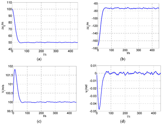 The subscript “” denotes that the values are determined and they are obtained at the balanced point. The formation states do not change much when they fly around the balanced point; thus, the variances of the random variables are approximately constant, and it can be assumed that the above parameters are independent of each other. In the following, we use to represent the random variables in (23).