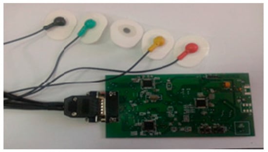 The paper presents an ECG (Electrocardiography)-based monitoring system [] using an acquisition device of the ECG signals to which electrodes are attached using wires that will be in contact with the patient’s skin (over the sampling period) and also an accelerometer device.
