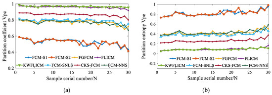 In this section, the clustering results and the designed roughness index are investigated. Firstly, the segmentation accuracy (SA) values of eight fuzzy clustering algorithms are compared. The SA is expressed as follows [36]: