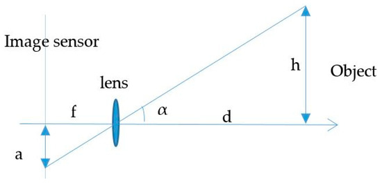 Using the pinhole camera approximation, the cross-height relation between the object and image is presented by Equation (3).