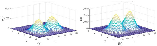 It can be seen that the accuracy of the coordinate calculation is mainly controlled by the distance estimation results. However, due to the Gaussian distributions, and inaccurate anchor positions and distance measurements, the least-squares formula can be reassigned with a weight of estimation variances as Equation (19). By applying more reference nodes which Gaussian distribution error for the distance estimation, the error with respect to the coordinates can be reduced.