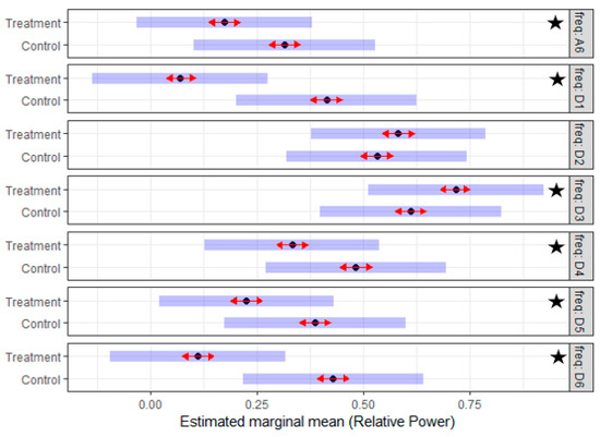 | the fixed effect associated with the (intercept, Day, EFFECT, EFFECT*Day, Freq, Freq*Day, Freq* EFFECT, and Freq* EFFECT*Day) | |