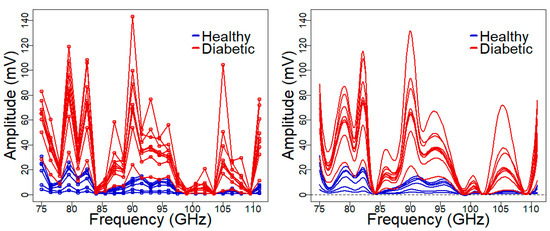 - Dornuf, F.; Martín-Mateos, P.; Duarte, B.; Hils, B.; Bonilla-Manrique, O.E.; Larcher, F.; Acedo, P.; Krozer, V. Classification of skin phenotypes caused by diabetes mellitus using complex scattering parameters in the millimeter-wave frequency range. Sci. Rep. 2017, 7, 5822. [Google Scholar] [CrossRef] [PubMed]