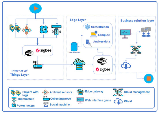 - The Management layer includes a social machine, as well as all the logic and intelligence that allows for the management of the serious game.