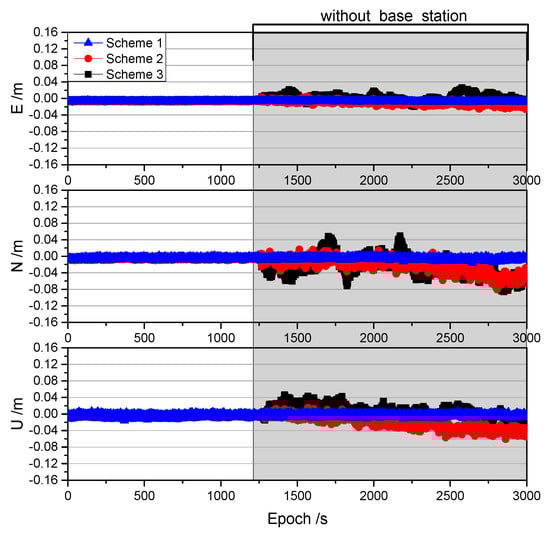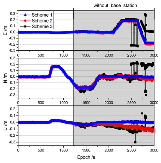 Time Span of the Interruption (min) | Standard Deviation (m) of Scheme 2 | Standard Deviation (m) of Scheme 3 | ||||