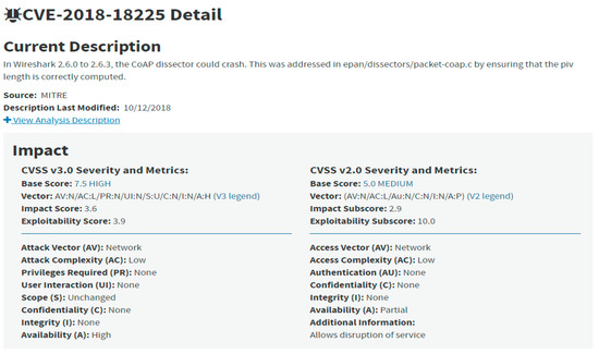 - National Vulnerability Database. Available online: https://nvd.nist.gov/ (accessed on 9 January 2019).