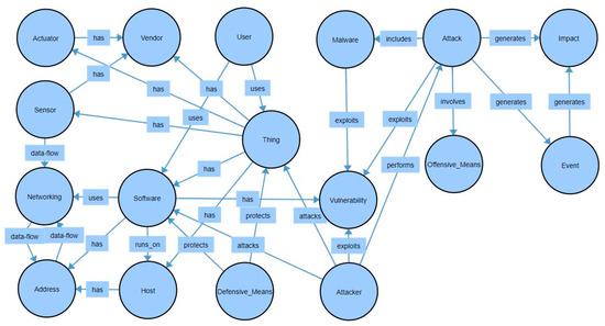 - Iannacone, M.; Bohn, S.; Nakamura, G.; Gerth, J.; Huffer, K.; Bridges, R.A.; Ferragut, E.; Goodall, J.R. Developing an ontology for cyber security knowledge graphs. In Proceedings of the 10th Annual Cyber and Information Security Research Conference, Oak Ridge, TN, USA, 7–9 April 2015; p. 12. [Google Scholar]