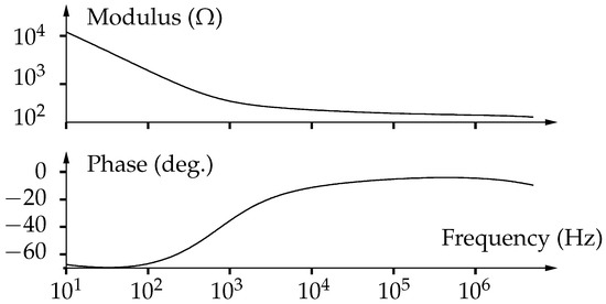 Let’s put into evidence some general characteristics of bioimpedance. All biological tissues present similar frequency behaviors. Typically, the impedance is globally decreasing, with one or several relaxation domains [16] as we can see in Figure 1. Variations are smooth, with noticeably no resonance and only require sparse frequency resolution.