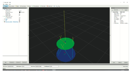 The Graphical User Interface (GUI) implemented with the ROS RVIZ interface. At all times, the state of the Stewart platform, with its reaction forces and the center of pressure (COP), can be visualized and monitored on this GUI.