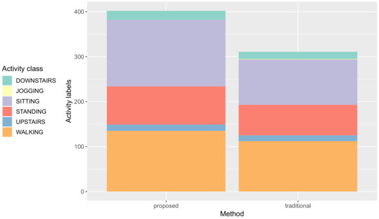 Table 6 shows the number of labels of each activity class by comparing the proposed and traditional. While some activity classes have more labels with the proposed method, only one class has fewer labels with the proposed method.