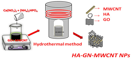 HA-GN-MWCNT composites were synthesized through chemical precipitation method by the procedure reported in Figure 1.