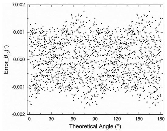 The error curves for θ12, θ13, θ23, and θsec after calibration, without using the integrating sphere central-symmetry method but by using the section algorithm, are shown in Figure 16.