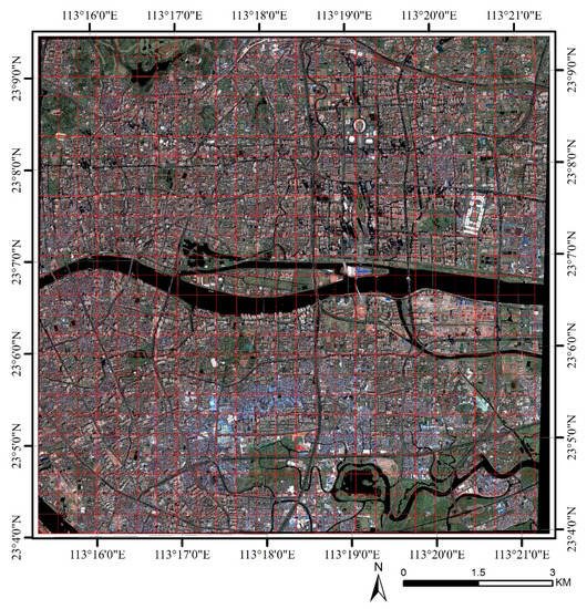 Figure 1 shows. The central urbanized area of Guangzhou was selected as the study area, which was divided into 625 grids of 400 m × 400 m according to the scale of LCZ (see red grids in