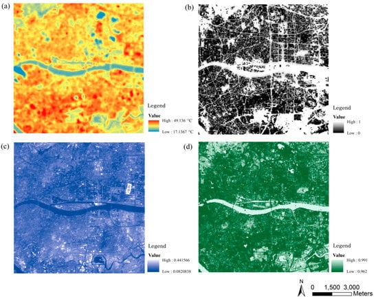 For an urban area that mainly comprised building and vegetation surfaces, the ground emissivity was determined by replacing as the emissivity of building . When NDVI was smaller than zero (NDVI 0), the pixel was recognised as water surface.