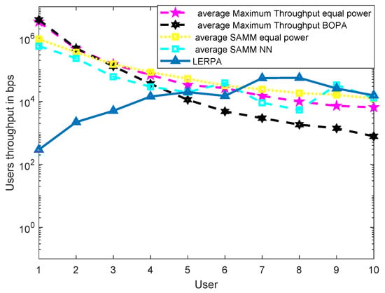 The users’ throughput with neural network for SAMM along with LERPA of [11] in multiple relays scenario.