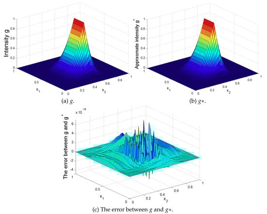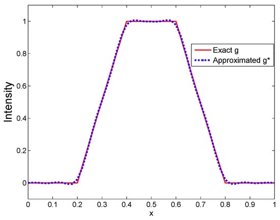 The exact intensity g and approximate intensity of the unknown fixed source.