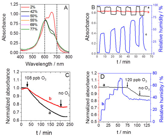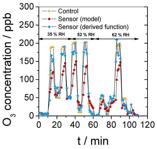 - Korotcenkov, G.; Blinov, I.; Brinzari, V.; Stetter, J.R. Effect of air humidity on gas response of SnO2 thin film ozone sensors. Sens. Actuators B Chem. 2007, 122, 519–526. [Google Scholar] [CrossRef]
