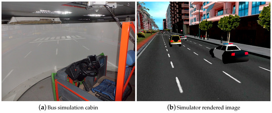 Nowadays, driving simulators are widely spread as an important tool in several areas like education or research. That is mostly due to the different advantages they offer compared to real vehicles [1]. Some useful features of simulators are the capability of stopping the simulation or giving feedback when used as a learning tool, the possibility of collecting massive amounts of data easily for driving analysis and the relatively low cost of the system compared to real vehicles, which saves money and time in the experimental process. In [2], under the so-called SAFEBUS project, experimental results are shown regarding some safety issues with urban buses, using both simulators and real experimental data. In addition, in [3,4], a simulated environment was used to evaluate a method to assist bus drivers through haptic devices.
