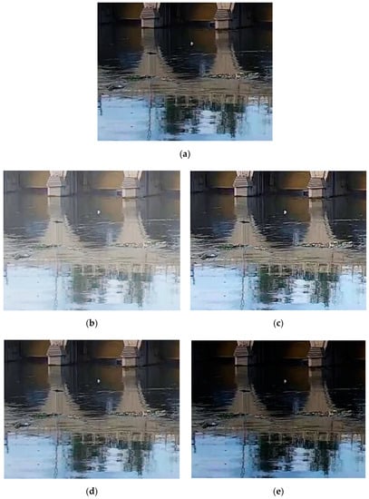The corrected images with different gamma values. (a) Original image; (b) Corrected image when ; (c) Corrected image when ; (d) Corrected image when ; (e) Corrected image when .