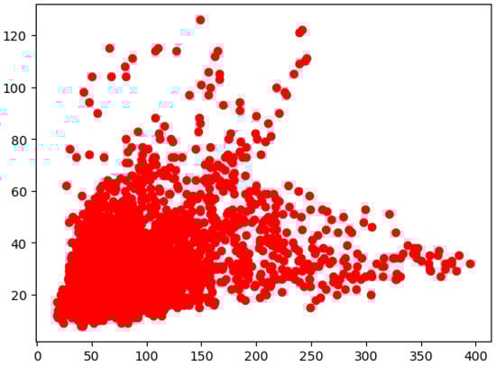 The distribution of the float scales in our dataset is shown in Figure 5. It can be seen that there were many small-scale floats and the width of the float was much larger than the height in our dataset. Therefore, according to the distribution, we assigned three aspect ratios {1:2, 2:5, 1:4} and four scales {322, 642, 1282, 2562} of the anchors, which were able to cover floats of different scales in our dataset. So, anchors will be produced at each sliding position in total. Then the box-regression layer will produce outputs, which are the coordinates of the k boxes. The box-classification layer will generate outputs, representing the probability that each box is an object or not.