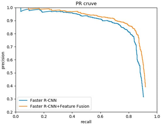 Precision–recall curves of Faster R-CNN with and without feature fusion.