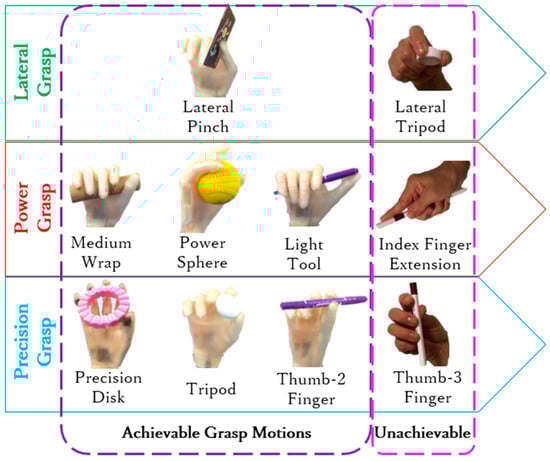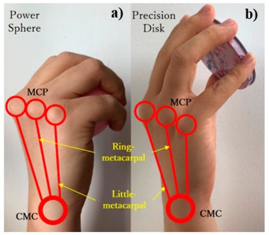 - Napier, J.R. The prehensile movements of the human hand. J. Bone Jt. Surg. 1956, 38–B, 902–913. [Google Scholar] [CrossRef]