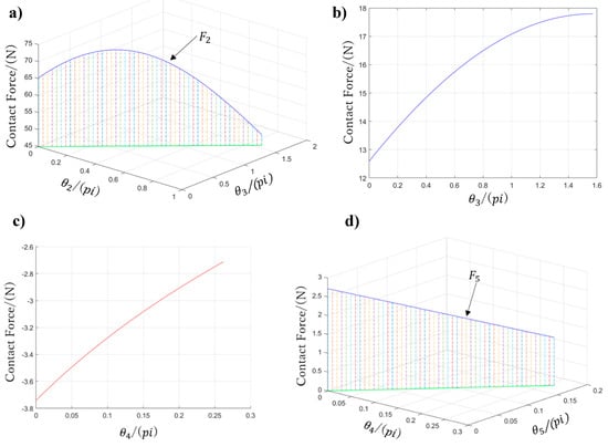 Figure 19 shows contact forces F2 to F5, whereas F1 is not plotted given its complex contact condition, which requires all variables , , and .
