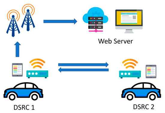 The experiments were carried out by two midsize vehicles, and each roof mounts a DSRC OBU at an approximate height of 1.48 meters. The OBUs were outside of the vehicles for most of the tests. However, some tests were performed with OBUs placed inside the vehicles due to heavy rain to prevent the electronics getting wet. The GPS antennas had to be mounted outside of the vehicles in all weather conditions; otherwise, the GPS position would stop updating. An additional micro-controller (Raspberry Pi) was connected with each of the DSRC OBUs via a RS-232 serial interface for data exchange. A diagram of the DSRC network sniffer and data connection is shown in Figure 1.