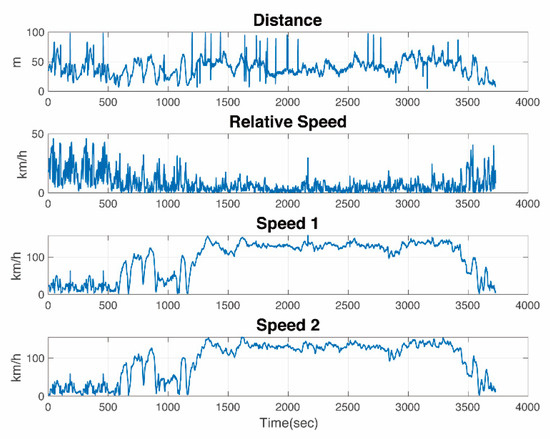 Measurement details (distance and speed) of two vehicles in an experiment in Ann Arbor.