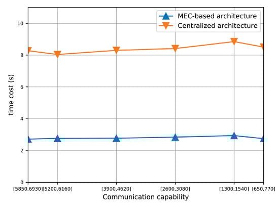 Time cost of the proposed algorithm under MEC-based and centralized architectures.